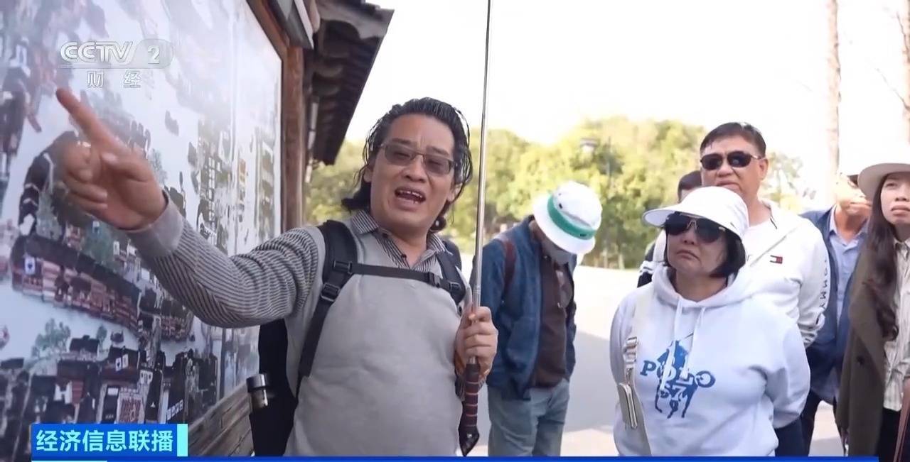 像李露这样忙碌的导游并非个例。在浙江乌镇,导游陈永正为三十余人的越南旅行团讲解江南水乡的布局,游客们走过石拱桥、穿行古街巷,不时驻足拍照。